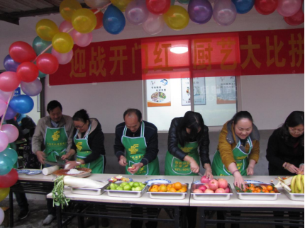 多年来玉溪易门县分公司员工特别是广大一线员工就餐问题一致困扰着大家。为解决职工的就餐问题,在省邮政工会的帮助和支持下,易门职工食堂建设纳入了“职工之家”建设计划。建设之初县分公司本着解决职工实现困难,促进企业和谐企业建设的着力点出发,坚持“建家就是建企业”的原则,广泛征求职工的意见建议,努力为广大员工提供了一个温馨、优质的就餐环境。经过请示、预算等系列规范的工作程序后,建设资金足额到位。历时8个多月的建设、完善,2018年12月中旬“职工食堂”建成投入使用。 为庆祝职工食堂的建成,共迎新年的到来,12月29日下午,县分公司工会举办主题为“迎战开门红 厨艺大比拼”活动。“我来煮青菜”、“我来切萝卜”、“我来拼水果”大家齐心协力自己动手烹饪各类美食,操作间传来职工们阵阵欢声笑语,一道道寓意积极向上、吉祥如意的家菜肴新鲜出炉,温馨和谐的氛围包围了整个小食堂。