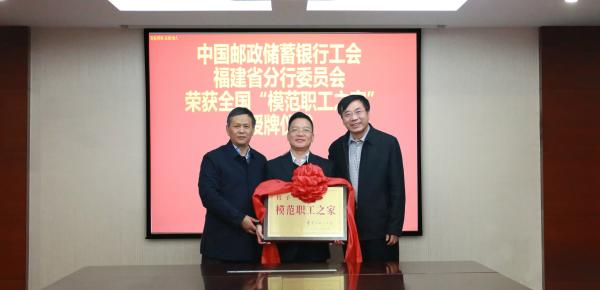 “全国模范职工之家”荣誉称号是中华全国总工会表彰建家工作的最高荣誉,也是国家对基层工会建家工作的最高褒奖。邮储银行福建省分行是2018年度中国国防邮电工会推荐的唯一一家邮政行业单位,也是邮储银行系统内第3个获此殊荣的单位。省邮政工会王全江主席主持了授牌仪式。期间,黄敬平副主席用“五个前头”充分肯定了邮储银行福建省分行在工会工作中取得的优异成绩。一是团结带领群众听党话、跟党走走在了前头;二是“高质量发展”走在了前头;三是在履行“维权、服务”的职能上走在了前头;四是推进群团改革工作走在了前头;五是工作创新亮点走在了前头。