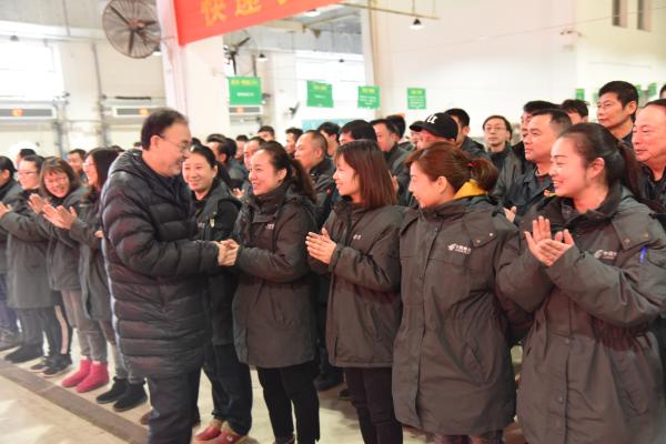 马军胜局长与基层员工亲切握手,感谢湖北邮政、武汉邮政干部员工对湖北经济发展做出的贡献,并向大家致以新春的祝福。他表示:“武汉邮区中心局见证了邮政企业的改革发展,面对邮电分营初期的各种困难,武汉邮政干部员工迎难而上,在业务发展、机制改革方面取得了显著成效。中心局业务量从投产时日均10万件增长到现在的130多万件,说明行业发展了,企业壮大了,科技手段先进了,这离不开各位工友的辛勤付出。”