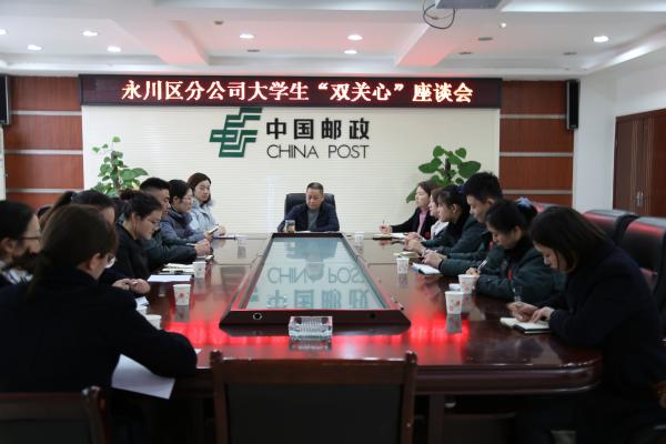 1月16日,永川片区分公司召开了大学生“双关心”座谈会,片区分公司党委书记、总经理廖白权,营业局负责人、团委负责人、工会负责人、人力资源部负责人及相关人员和近三年来加入永川片区分公司这个大家庭的大学生参加了座谈会,会议由人力资源部主持。