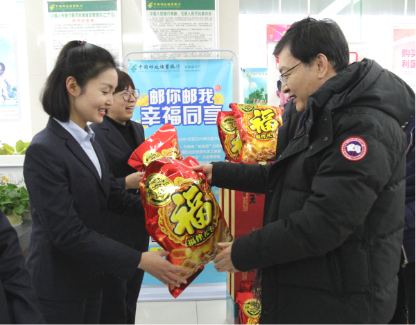 最后,唐健董事代表总行向长期奋斗在基层网点的同志一一送上慰问礼物。一声声亲切的问候,表达总行领导关怀的心声,一份份精心的礼物,温暖着基层员工们的心。他们纷纷表示,一定要将总行领导的亲切关怀化为动力,在接下来的工作中脚踏实地、迎难而上,为邮储银行发展作出自己应有的贡献。