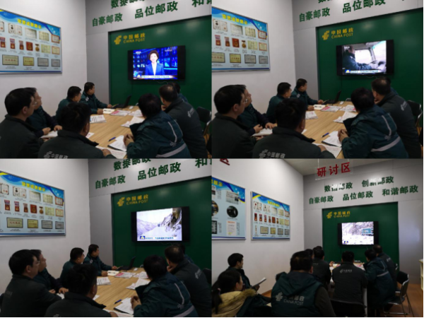 2019年1月28日下午,杨兵劳模创新工作室组织职工观看《其美多吉:雪线邮路的幸福使者》,通过学习时代楷模,发挥典型示范力量,进一步推动劳模精神传承与发扬。 其美多吉事迹生动感人、催人奋进,深深感染了中心职工,观看完新闻联播报道后,座谈会上,全体职工表示将把其美多吉精神化为干事创业的强大动力,以劳模、先进为榜样,在各自平凡的工作岗位上积极进取,主动担当,继续发扬爱岗敬业、脚踏实地、开拓创新、勇于争先精神,以实际行动为将中国邮政打造成行业的“国家队”而努力奋斗。
