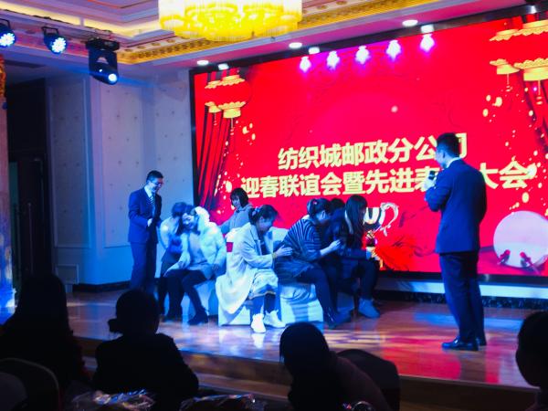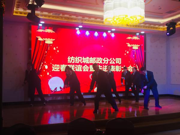 为了进一步倡导“快乐工作、健康生活”理念,增强职工队伍的凝聚力和向心力,给员工创造展示自我的平台,纺织城邮政分公司于2019年1月26日下午6点举办迎新年联欢晚会,共有140余名职工欢聚一堂,共贺新春。晚会共有10个节目,涵盖舞蹈、相声、秦腔、独唱、合唱等,均为网点和机关自编自演,中间穿插神秘颁奖,整个晚会精彩不断、高潮迭起。晚会穿插了三次神秘颁奖,每次颁奖都有针对奖项的颁奖词,获奖人上台领奖时都深感意外。在这台晚会即将准备就绪的时候,无意中得到一个消息,当天正好是分公司一位员工的生日,为了在晚会上给她带来惊喜,所里和晚会筹备组提前做了保密工作,分工司工会还专门为她定制了一份生日蛋糕,职工收到蛋糕后激动不已,感谢分公司工会对职工的关爱。