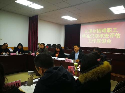 1月21日云南省总工会委托的全省困难职工精准识别核查第三方评估机构---云师大李学舒组长一行,在大理州总工会召开全州困难职工精准识别核查评估工作座谈会。州总工会、第三方评估组、大理州属产业工会15个单位参加了会议。