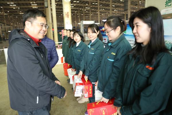 在邮件处理中心门口,丁永红首先代表省分公司党组向奋战在节前旺季生产一线的员工以及省劳模致以节日的问候和衷心的感谢,并亲手送上了节日慰问品。
