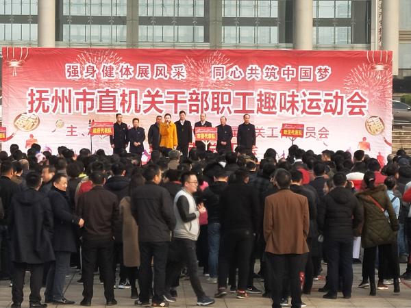 1月26日—27日,抚州市直机关干部职工趣味运动会在市行政中心南广场拉开帷幕。本次趣味运动会由中共抚州市直属机关工作委员会、抚州市总工会主办,来自78个市直单位的81支参赛队1200余名干部职工参加了比赛。