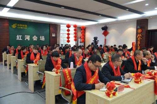 2019年1月21日,红河州分公司会议室红红火火、喜气洋洋,全州邮政2018年代理金融表彰大会暨2019年誓师大会在这里召开。会议由州分公司副总经理余镇主持,州分公司总经理李朝辉、调研员李腾云,副总经理、工会主席瞿志华及全州各县区、专业的领导和职工代表出席了表彰会。