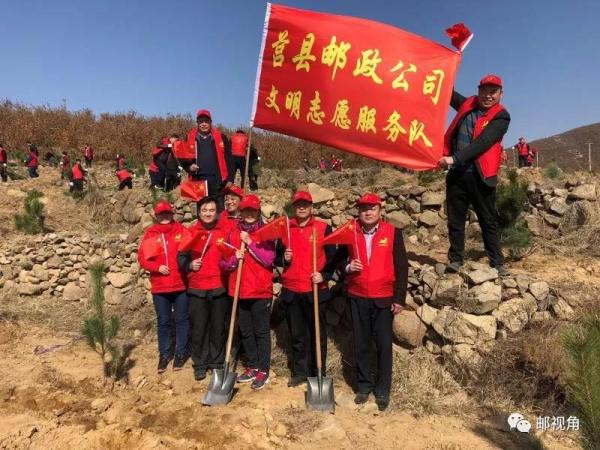 为认真贯彻落实“绿色发展”理念和日照市委市政府“生态立市”战略。3月13日,日照市邮政分公司组织干部员工在岚山区中楼镇浔河峪绿化现场植树点开展植树造林活动,为全市生态建设再添新绿。早上7点整,市分公司李献成副总经理与各部门选派的18名干部员工一起赶往植树活动现场。植树现场,参加植树的人员挥锨铲土,扶苗填坑、培土夯苗、踩实浇水,每一道工序都做得认真到位,大家分工协助,相互配合,现场一派热火朝天的忙碌景象。经过大家两个多小时齐心协力的劳动, 近300株松树苗全部栽植完成,原本黄土斑驳的荒山披上了绿装,变得生机盎然。与此同时,莒县和五莲邮政分公司也在植树节当天开展了义务植树活动。通过此次义务植树活动,全市邮政干部员工牢固树立了爱绿植绿护绿的意识,深刻践念。