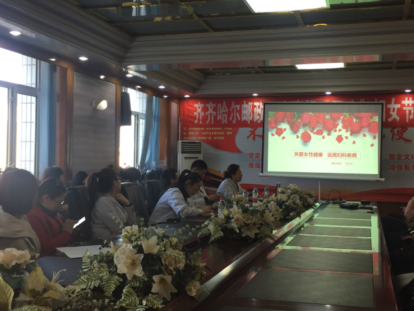 在“三八”国际劳动妇女节来临之际,齐齐哈尔邮政工会为了更好地关心女职工的身心健康,普及女职工的健康知识,让女职工能以健康的体魄、充足的精力投入到岗位工作当中,3月6日下午举办了“女职工健康知识讲座”,专门聘请了齐齐哈尔市建华医院的田云臣、佘军、马玉杰主任授课,市分公司部分女职工代表到场聆听了本次讲座。