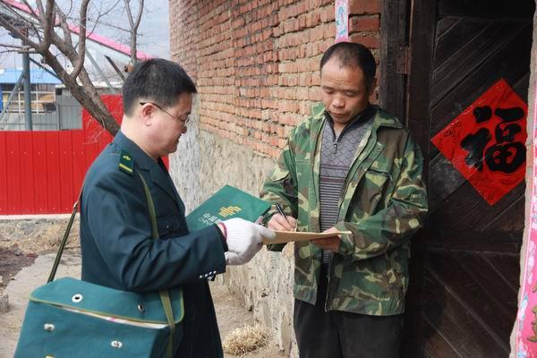 图为全国劳模王明杰深入到边远山区的农户家中开展乡邮投递工作