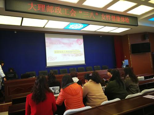3月7日早上,州邮政工会邀请体检中心的妇科专家为全体女职工进行女性健康知识讲座,不少女职工在现场进行了健康咨询,讲座结束后,大家到达洱海公园,开始登山比赛。三月的春天空气清新,景色怡人,大家放下手机、离开电脑、走出办公室、走进大自然个个心旷神怡,感受着大自然的美丽,交流着工作的心得,分享着生活的快乐,欢声笑语在林间传播,傍晚进行了跳绳比赛和女性权益知识竞答,现场气氛热闹,轻松愉快。 次日合作单位为女职工进行了简易体检,第二批次的女职工又开始了一天的活动。