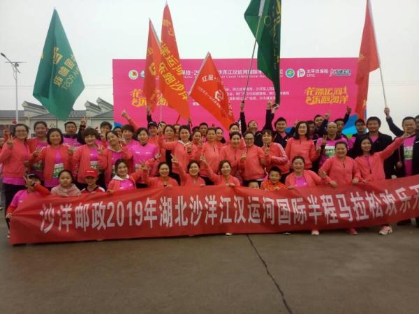 3月23日,湖北沙洋江汉运河国际半程马拉松在沙洋县李市国际马拉松广场隆重举行。比赛吸引了6000多名马拉松爱好者参加,沙洋县邮政工会组织53名邮政职工参加了本次比赛,均顺利完赛。