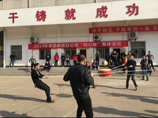 为践行“我流汗 我健康 我幸福”全员健身理念,丰富干部员工业余文化生活,增进干部员工之间的交流沟通,展现干部职工健康向上、顽强拼搏的精神面貌,4月1日,孝昌分公司举办职工“同心鼓”集体项目比赛。
