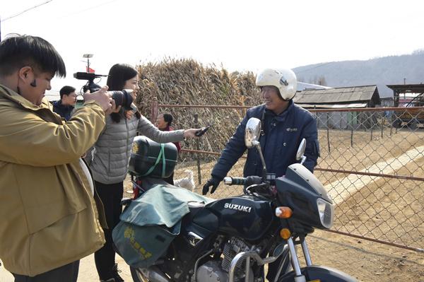 图为中央电视台记者跟班采访乡邮员金仁哲