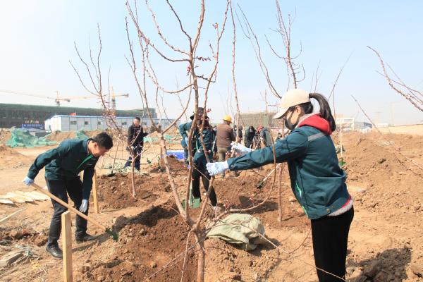 在植树活动现场,职工们分工明确,自由组合,大家挥锹铲土,扶苗踏实,挖坑、栽树、盖土、浇水等各环节一丝不苟,栽得认真,干得卖力,整个植树活动现场一片热火朝天的劳动景象。经过2个小时的劳动,100棵树苗一排排笔直成型,为原本荒芜的空地增添了勃勃生机。“我们种下的这些树,春天可以看花,夏天可以品果,也让我们的处理中心越来越漂亮!”植树活动受到了广大职工同志们的欢迎,纷纷表示非常愿意参加这样的活动。