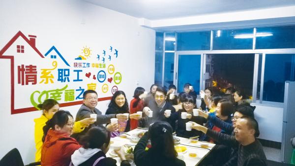 原来,结束了一天忙碌的工作后,渝北分公司“挂包帮”人员正和网点员工一起,为同事们“开小灶”。大家分工均匀,有的炒料,有的洗菜,有的切菜,有的摆盘,忙得不亦乐乎!不多时,鲜香麻辣的火锅出炉,大家围坐在一起亲如家人,热热闹闹地边吃边聊。先回“家”的,自夸厨艺好,晚回“家”的,自觉举手洗碗……欢声笑语间,每个人脸上都洋溢着幸福的笑容。在这个温暖的“家”里,美味的食物满足了胃,幸福的相聚温暖了心,大家齐齐举起手中的可乐,祝愿工作蒸蒸日上、日子越过越火!