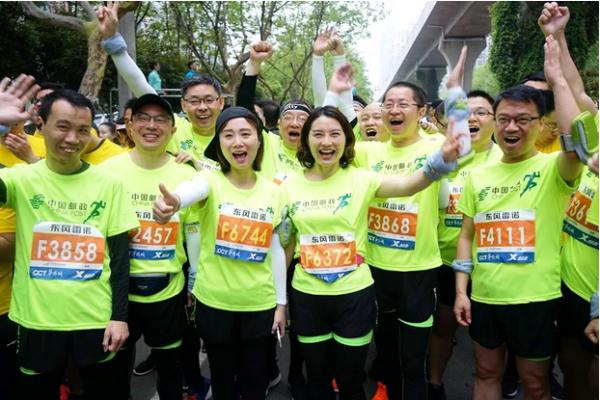 4月14日上午7时30分,2019武汉马拉松鸣枪开跑,来自世界各地的2.4万名参赛选手中,身着荧光绿比赛服的湖北邮政跑团格外靓丽耀眼。