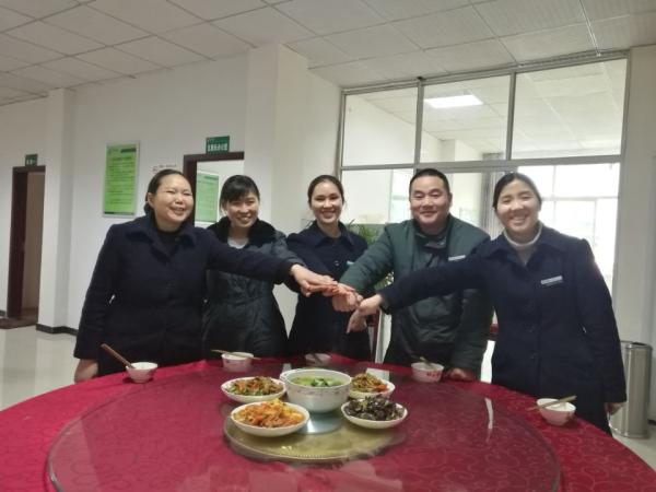 “冯家,冯家,飞一般的家,加油!”3月5日中午,重庆市黔江区分公司冯家支局员工手搭着手,颇有气势地喊出了属于他们独特的心声。饭前加油鼓劲,是支局员工在生产经营旺季缓解压力,斩获佳绩的小秘密。结束“仪式”后,员工们开开心心地围坐在一起,用一餐美味为下午工作养精蓄锐。餐桌前,他们尽情地享用着同事做的香喷喷的午餐,储汇业务员聊着上班遇到的难题,理财经理分享着发展业务取得的经验,大家相互支招,相互鼓励,其乐融融间一上午的疲惫很快烟消云散,只待下半场的新挑战。