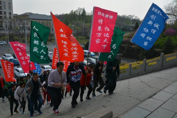 4月28日,铁岭市分公司工会组织市分公司本部全体干部职工共200余人来到龙首山开展“弘扬总理精神,牢记邮政使命”迎五一健步走活动纪念伟大的周总理。