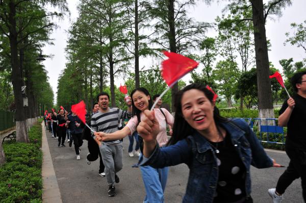 参观学习结束后,在四面鲜红旗帜的带领下,大家集体前往东湖绿道开展了“健步走”活动。活动中,大家分为两队,有序前行。6公里的行进路程,大家时而口号声声、时而红歌嘹亮、时而小憩留影、时而疯狂暴走,在湖边绿道上形成了一道靓丽的风景线,引得路人频频观望、驻足拍照,湖北邮政青年员工朝气蓬勃、积极向上的青春风貌一展无遗。