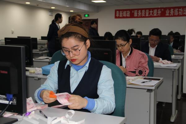 4月29日,为迎接“五一”劳动节的到来,阜新邮政举办了“服务质量大提升”业务练功比赛。在市分公司领导的高度重视下,工会、人力资源部、服务质量部等部门紧密配合,统筹部署,结合业务发展需要合理设置了比赛项目。各相关单位认真拟订培训计划,科学安排通信生产,严密组织模拟训练,严格按照标准选拔,取得了显著效果。全公司76名职工参加了六大工种20个项目的比赛,通过激烈角逐,最终评选出各工种冠亚季军各一名。