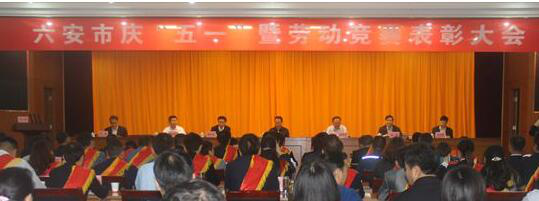 4 月24日,六安市召开庆“五一”暨劳动竞赛表彰大会。市长出席表彰大会并为各行各业、各条战线上的先进集体和个人代表颁奖。中国邮政集团公司六安分公司农村电商团队获六安市工人先锋号荣誉称号,中国邮政集团公司舒城县分公司庐镇邮政所投递员叶小梅同志荣获六安市五一劳动奖章称号,为我市邮政职工树立了榜样。