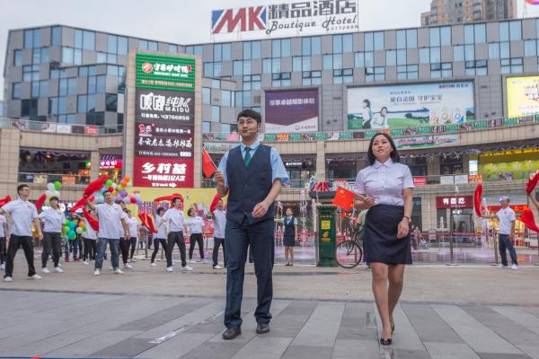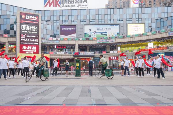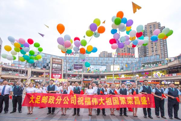 5月9日晚7时许,MK广场热闹非凡,重庆市大足分公司60余名青年员工齐集于此,开展足邮快闪活动,足邮青年深情唱响《我和我的祖国》、《情系万家》。载歌载舞,献礼新中国成立70周年;小男孩儿小女孩寄送明信片,自行车穿梭于大街小巷,投递员将信件送到用户手中等情景设计穿插于活动当中,将“一封信一颗心”的浓郁情怀及邮政企业优质的服务形象地展现在公众视野当中。大足日报、大足电视台相继对此次活动进行报道。