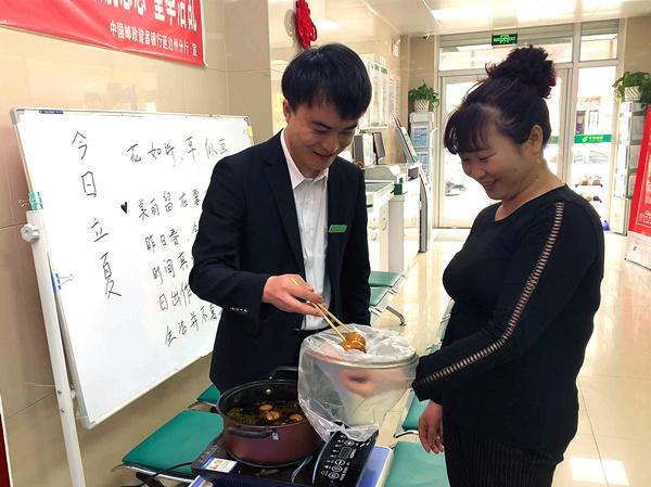 当天清晨,该支局员工们亲自动手,洗鸡蛋、放茶叶、煮鸡蛋一气呵成,两个小时后,香气扑人的茶叶蛋已准备好。营业网点开门后,员工们将茶叶蛋送到每一位前来办理业务的客户手中,并送上立夏日吃鸡蛋可以祈祷夏日平安等祝福。收到鸡蛋和祝福的客户们都对邮政的服务赞不绝口。