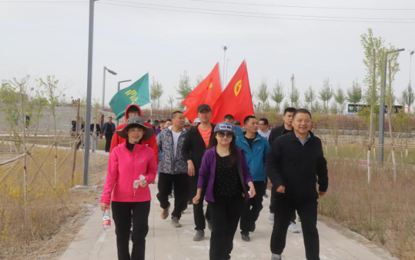 为确保此次徒步活动顺利开展,市分公司调配2辆后勤车,并准备了应急药品和时令水果、面包等补给。徒步队伍从市分公司家属院出发,沿迎宾路、黄河路、西藏路、柴达木路、市图书馆,最后到达目的地湿地公园南门,全程大约9公里。一路上春和景明,艳阳高照,绿树掩映,徒步其中令人心旷神怡。飘扬的旗帜和员工们洋溢的笑脸组成了一道美丽的风景线。