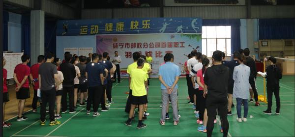为进一步丰富职工文体活动,落实人人都有一个流汗项目,增强团队协作精神,5月17日,咸宁市邮政分公司首届职工羽毛球比赛在咸宁地质队羽毛球馆隆重举行。比赛项目共分为男子单打、女子单打等2个项目,共有8支代表,60余名运动员及教练员参加比赛。