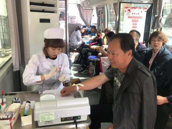 为方便邮政员工献血,齐齐哈尔市红十字血站将爱心献血车开到邮政公司门前,早上8点30分,自愿献血的员工们就在献血车前排起了队,踊跃参加志愿者无偿献血活动。