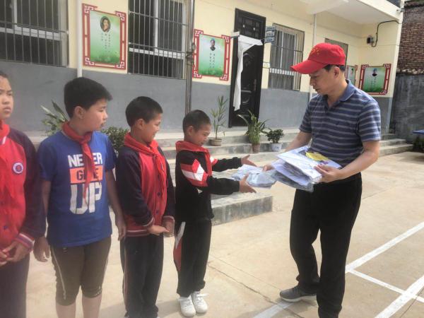 5月31日上午,纺织城分公司副总经理胡耀华,携分公司相关人员第五次进入蓝田北峪小学,提前为孩子们送上六一儿童节礼物。北峪小学只有1-3年级共11个小孩,都是父母在外边打工的留守儿童,2015年至今,分公司志愿服务队每年都去为孩子们送温暖,今年为孩子们购买了夏装和文具,深受老师和孩子们的喜爱。