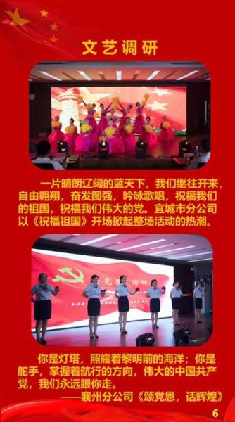 7月1日下午,为庆祝建党98周年,襄阳市邮政分公司召开了“砥砺奋进新时代 筑牢襄邮铁军魂”职工文艺调演暨总结表彰大会,全市广大干部职工齐聚一堂,共度“七一”建党节。