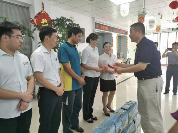盛夏时节,骄阳似火。8月7日,省分公司副总经理熊荣一行来到鄂州,先后深入到杨叶邮政支局、寿昌邮政支局、石山投递站、江广投递站慰问战斗在一线的邮政员工。为基层员工送上慰问清凉盒及慰问金,并带来省公司党组的慰问及亲切关怀。省公司寄递事业部运管部总经理庞子培、省公司转型办张凌陪同慰问。