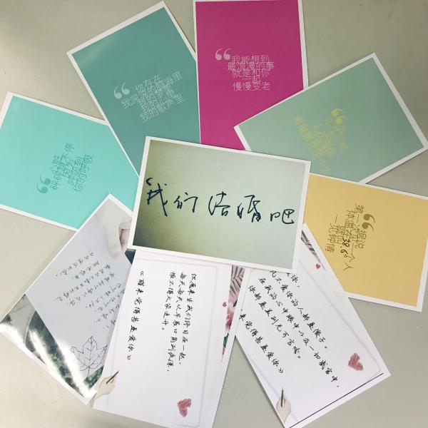 8月7日一大早,重庆市沙坪坝区分公司文化传媒部的同事们就赶到了“沙磁邮礼”主题邮局,以主题邮局为活动阵地,开展“七夕”节主题营销活动。今年的七夕比以往更多了一个公历日期的“七”,显得越发的与众不同,而我们文化传媒部的同事们更是为了体现这份不同下足了功夫!在开展活动时,要有参与度又要不落俗套,于是便在客户接受度较高的满额赠礼的礼品上下足功夫,选择了与节日贴合度极高的“DIY明信片”。新颖的明信片既与节日主题高度一致,还可以根据客户情况“私人订制”,受到了广大年轻客户的欢迎。