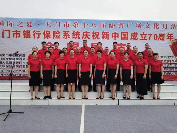 8月7日晚,天门陆羽广场人头攒动、灯光璀璨,一曲曲摄人心魄的红歌飘扬在广场上空,“天门市银行保险系统庆祝新中国成立70周年合唱汇演”于当晚7:30在这里拉开帷幕,参演队伍达16支近400人。市分公司以一首《我们走在大路上》唱出对党的无限忠诚和对祖国的赞美,高亢的歌声点燃现场数千名观众的观演热情和爱国激情,收获了阵阵掌声和欢呼声。