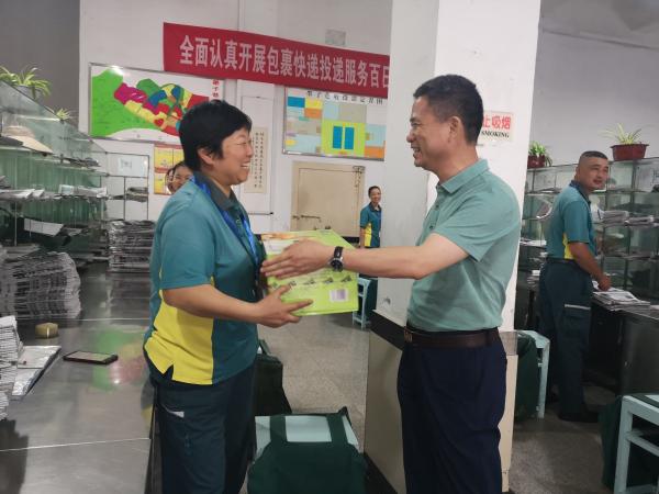 8月2日,安庆市分公司领导班子成员顶着烈日,带着慰问品,分赴邮区中心局、5个城区营业部以及部分支局网点,为高温下坚持生产作业的员工们送去了一份清凉。