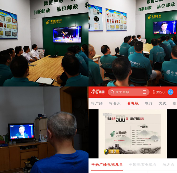 2019年8月4日晚,集团公司刘爱力董事长作为嘉宾参与录制的《对话——世界500强的中国力量》节目在中央电视台二套播出,中心局工会认真组织中心员工在家通过电视或手机“学习强国”平台准时收看。8月5日下午,运输中心再次组织员工于杨兵劳模创新工作室观看节目并开展研讨会,节目中,刘爱力董事长关于中国邮政发展的深度思考和睿智作答让中心员工们倍感信心和自豪,研讨会上,中心员工纷纷表示,中国邮政是世界500强,是与共和国共成长的中国企业,我们是邮政人,是与中国邮政共成长的绿衣天使,中国邮政的名片就是我们的名片,在实际工作中,将始终以“人民邮政为人民”为座右铭,紧握邮车方向盘,发挥出邮政特长,以连接美好、传递美好、让美好无处不在为己任,为做优、做大、做强中国邮政而奔跑不停、奋斗不止。