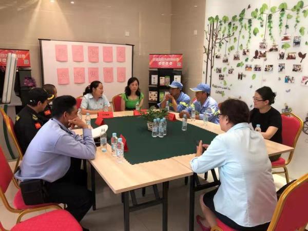 一行人来到网点爱心接力站前,实地考察爱心接力站的各项设施,例如微波炉的正常使用,爱心椅子的整洁度,饮用水的储备等等,并请户外工作者们就摆放位置,座椅布局,用品放置等细节问题现场提出合理化建议,使得站点能在日后更好地为他们服务。 随后一行人在活动室展开座谈会,轻松愉快的氛围使得大家很快放松下来,畅所欲言,通过交流也更能体会户外工作者在实际工作中,每一天,真实地,去面对酷暑严寒考验的不易。 其中一位环卫工人代表朴实的发言,感染着在场的每一位成员,他说:“别看这么个小小的爱心接力站,不显眼,其实对我们这些在户外工作的人来说真的帮助很大,特别是夏天能在进来稍微坐一下,歇个脚,喝口水,心里暖。”
