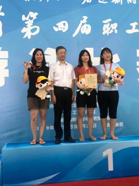 经过三天的激烈角逐,在接力项目中,江西邮政游泳队聂岱莉、卢莺、朱筱萍、姚晓丽荣获了女子省产业组4×50米自由泳、女子省产业组4×100米自由泳和女子省产业组4×50米混合泳3块银牌,肖琛、卢莺、潘湧、聂岱莉、朱筱萍、李志荣获了男女省产业组6×50米自由泳第四名;在个人项目中,卢莺荣获了女子省产业组100米自由泳银牌和女子省产业组100米蛙泳铜牌;聂岱莉荣获了女子省产业组50米自由泳铜牌和女子省产业组50米蛙泳第六名;李志荣获了男子省产业组50米自由泳第四名和男子产业组50米蛙泳第八名;肖琛荣获江西省第四届职工运动会体育道德风尚运动员。