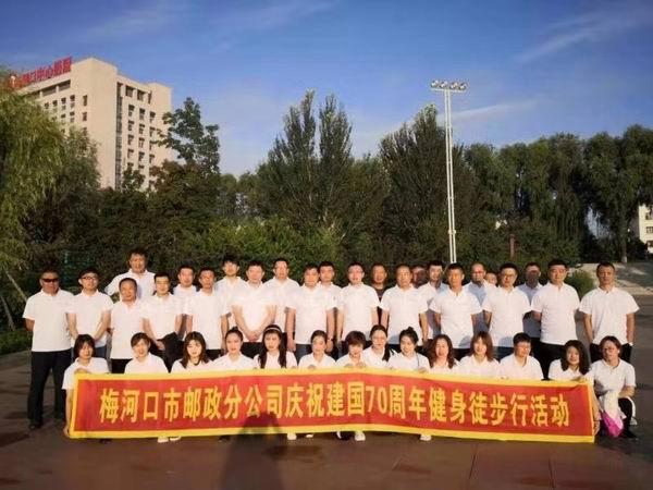 为深入贯彻落实党的十九大提出的广泛开展全民健身活动,加快推进绿色邮政建设,中秋节前夕,梅河口市邮政分公司举办庆祝建国70周年健身徒步行活动。本次活动以“热爱祖国、奉献企业、步入自然、走出健康”为主题,让全员树立起绿色出行、健康运动的理念。