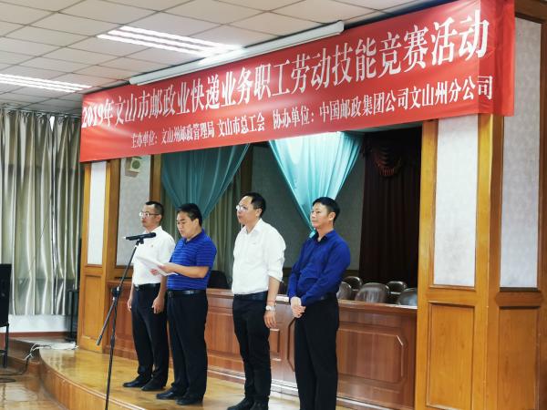 9月10日下午,文山州邮政管理局、文山市总工会在文山州邮政分公司七楼会议厅举行“2019年文山市邮政业快递业务职工劳动技能竞赛”活动,来自文山邮政、邮政速递、韵达、中通、申通、圆通、百世、顺丰、品骏、德邦、京东、天天、优速、苏宁等15家企业优选出的30余名选手参赛。
