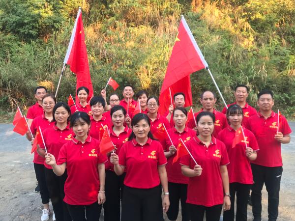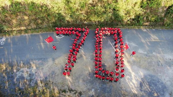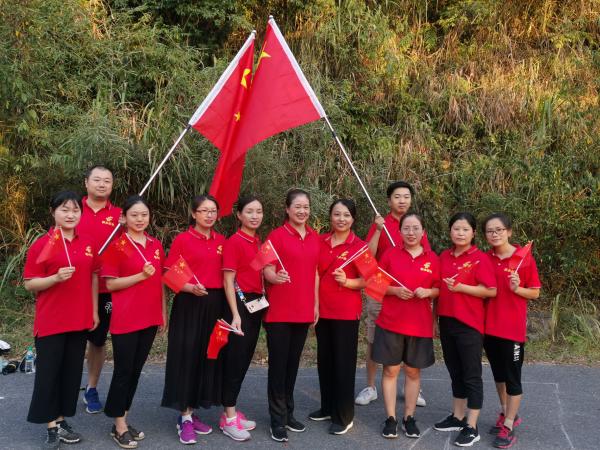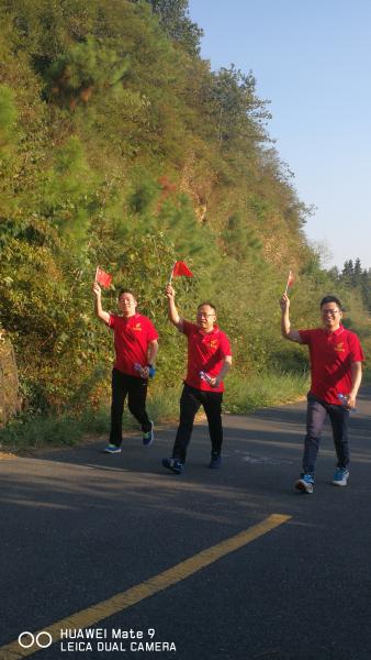 当天下午15点,报名参加的员工统一坐大巴前往仰天岗国家森林公园,森林公园里群山起伏,林木葱郁,是新余名副其实的城市后花园和绿色生态屏障,被誉为“城市绿肺”和“天然氧吧”。从龙盘隧道登山口开始,大家兴致盎然,一路上说说笑笑,一边欣赏着优美的风景,一边分享着各自的喜悦。登上山顶后,大家依序排成“70”队形,挥动手中的红旗,大声歌唱《我和我的祖国》。