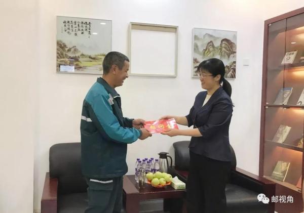 9月23日,泰安市政府副市长成丽一行到泰安市邮政分公司营业局下港支局慰问新时代泰山“挑山工”标兵—投递员徐西国,泰安市邮政分公司总经理姚志刚陪同。