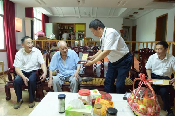 在庆祝新中国成立70周年之际,9月24日,黄冈分公司总经理胡智宏,人力部经理於艳雄、工会副主席陈文一行,走访慰问离休退伍军人王运祥,并亲手为老人佩戴“庆祝中华人民共和国成立70周年”纪念章,送上组织的关怀和节日祝福。