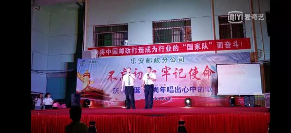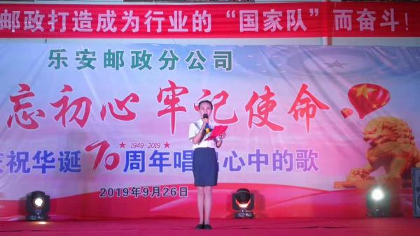 9月26日,为庆祝祖国70华诞,结合“不忘初心·牢记使命”主题教育活动,乐安县邮政工会与党建部联合举办了“庆祝华诞70周年·唱出心中的歌”文艺晚会。
