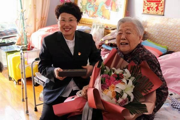 在庆祝新中国成立70周年之际,9月26日,敦化市分公司副总经理、工会主席崔琴英代表敦化市分公司对新中国成立前参加工作的老同志进行走访慰问。