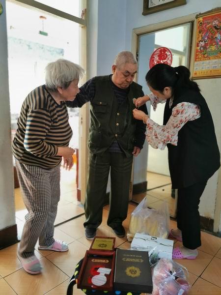 张福兴同志1933年5月出生,1949年3月参加革命工作。付永艳详细询问了老人的身体健康及生活保障情况,祝福老人晚年幸福,健康长寿!她亲手为老人佩戴了由中共中央、国务院和中央军委颁发的庆祝中华人民共和国成立70周年纪念章,充分肯定了老同志的历史贡献,表示将珍惜老同志创造的宝贵精神财富与物质财富,带领公司全体干部职工继承和发扬老同志的优良传统,勤勉敬业、努力工作,共同开创柳河邮政更加美好的未来。(吉林邮政工会)
