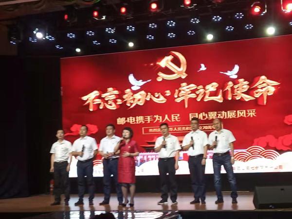 近日,在昆仑酒店阳光大厅,由中国邮政集团公司七台河市分公司、中国电信股分有限公司七台河分公司联合主办的“不忘初心 牢记使命”,邮.电携手为人民,同心翼动展风采,热烈庆祝中华人民共和国成立70周年联谊会,在邮政公司机关支部党员演唱的开场曲大合唱《我和我的祖国》、《众人划浆开大船》嘹亮歌声中拉开了帷幕。