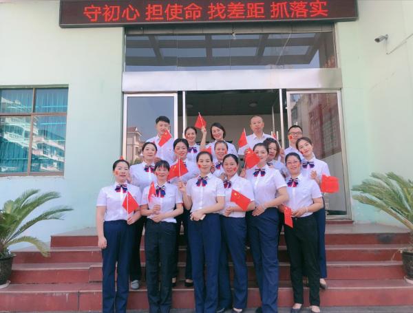 当天上午8:30,南丰县分公司领导班子成员、全体党员以及各部门近40余名员工参加了快闪主题活动。活动在全体党员集体重温入党誓词中拉开了序幕。随后,大家迎着初升的第一缕朝阳,列队进在“人民邮政为人民”的背景下全员齐声共唱《我和我的祖国》,集中展示了南丰邮政人风采,凝聚和传递正能量。紧接着,大家走进一线生产作业现场,展现了员工立足岗位,坚守职责。活动最后,全体人员沐浴着朝阳的光辉,挥舞着手中的国旗来到了曾巩文化广场,感受传承千年的曾巩文化,表达了践行“不忘初心、牢记使命”的决心。